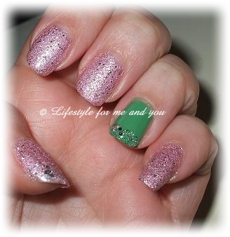 Den Glamourous Finish Glitter Top Coat habe ich nur auf dem grünen Nagellack benutzt, da der p2 Sand Style Lack schon genug von alleine glitzert.