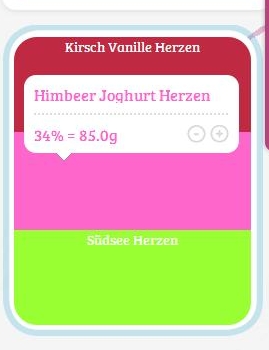 Man hat hier ein + oder – Zeichen und kann so entsprechend mehr oder weniger von einer Sorte wählen.